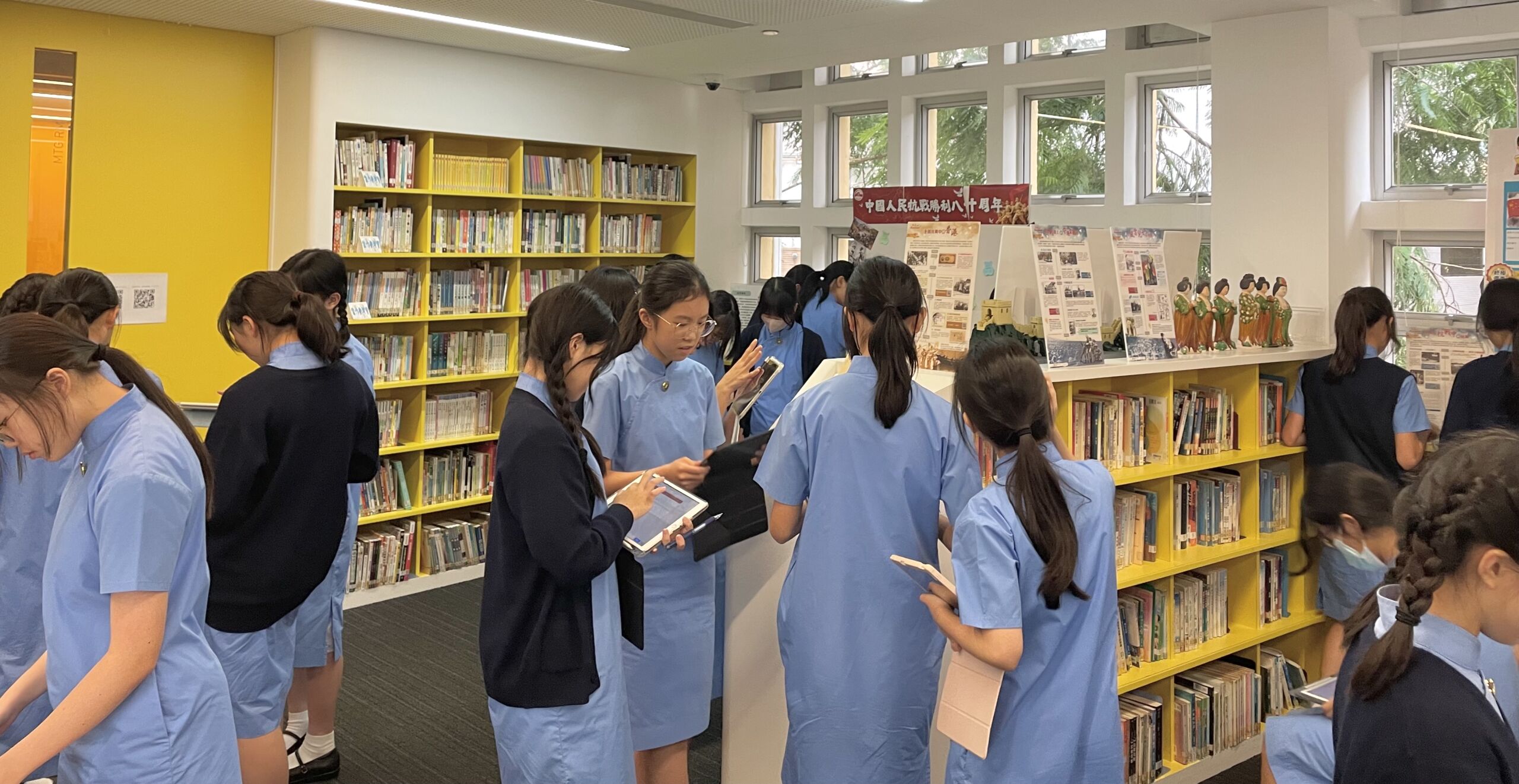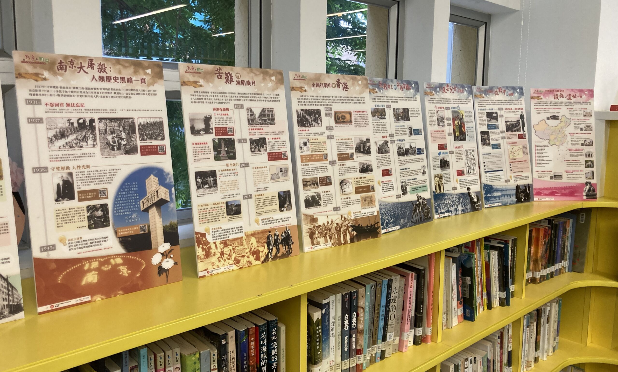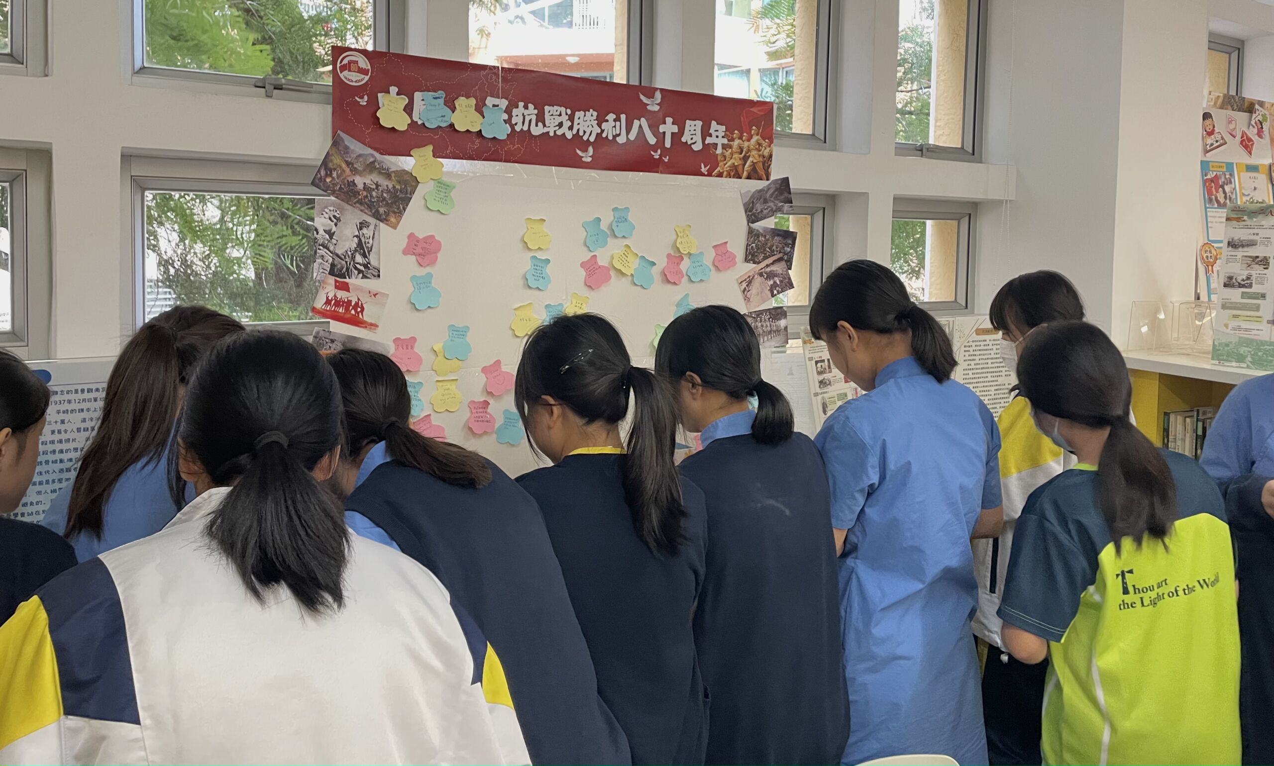 今年是中華人民抗戰勝利八十周年,本校為了紀念抗戰勝利並讓同學能更了解抗日戰爭,於九月十八日至十月三日期間準備了一系列的紀念活動讓同學參與。我們在圖書館設有「從戰爭到和平」展板,並讓中五級選修中史同學設計問答題給中一至中三同學回答,以問題作為引導讓同學能更了解展板內容。我們亦在圖書館擺設了有關抗戰的書籍展覽,讓有興趣的同學能進一步探究抗日戰爭的歷史。