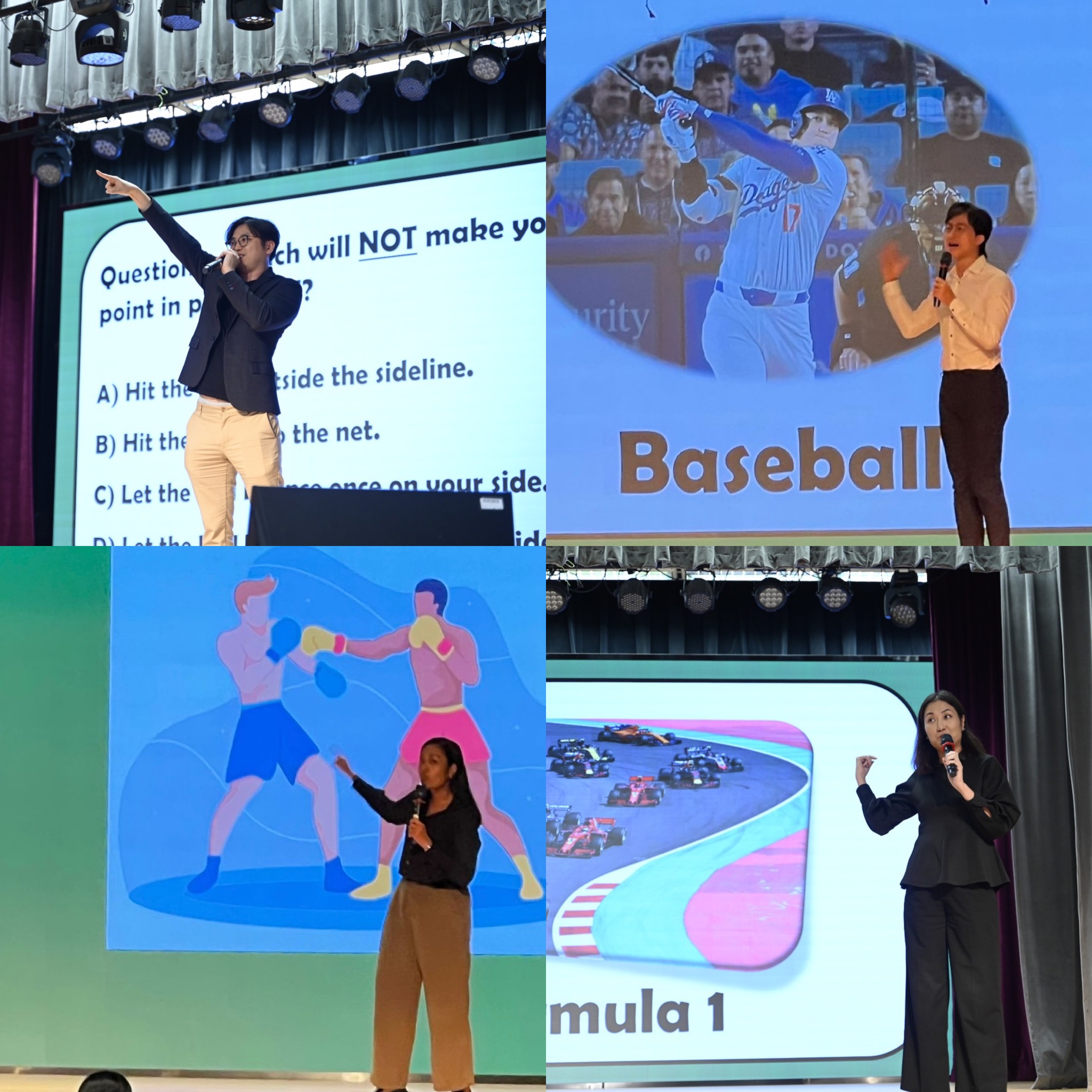 Students were eager to answer trivia questions, which were prepared by our English teachers that highlighted sports like Chess Boxing, Baseball, Pickleball, and even Formula 1. The whole student body had a lot of fun racing to answer questions to gain points for their class.