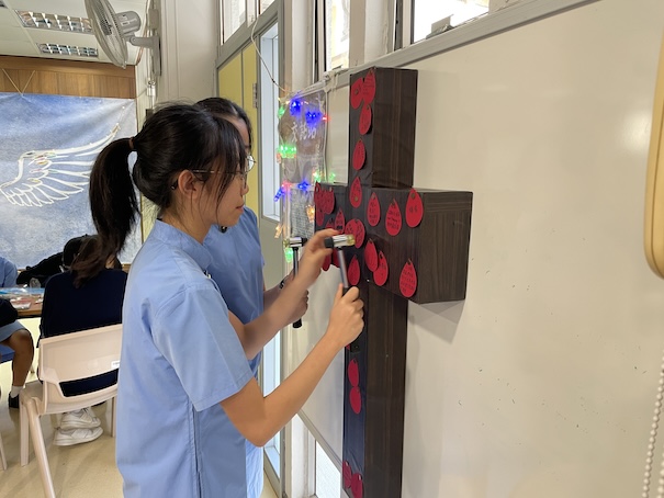 Members of the Student Christian Fellowship were passionate about sharing the gospel. They shared their devotion to God through beautiful music of worship busking and dance. A paper plane contest was also held in which students had a lot of fun and literally won some “wings” for a prize. A power wall was installed in the Covered Playground for students to write their prayer requests and words of encouragement. Many students also connected with others and had meaningful talks about faith during fellowship trial.