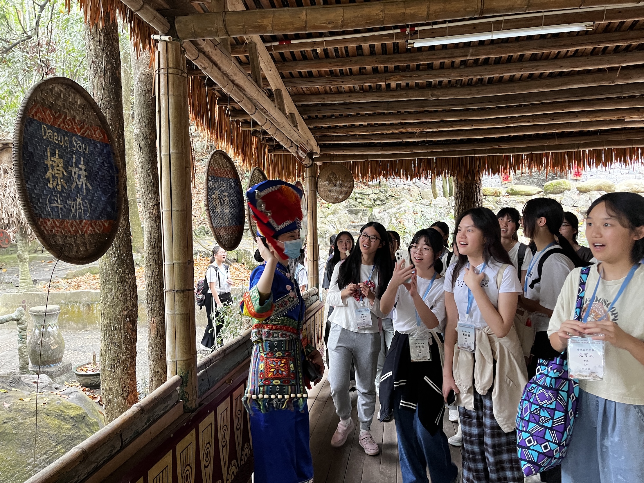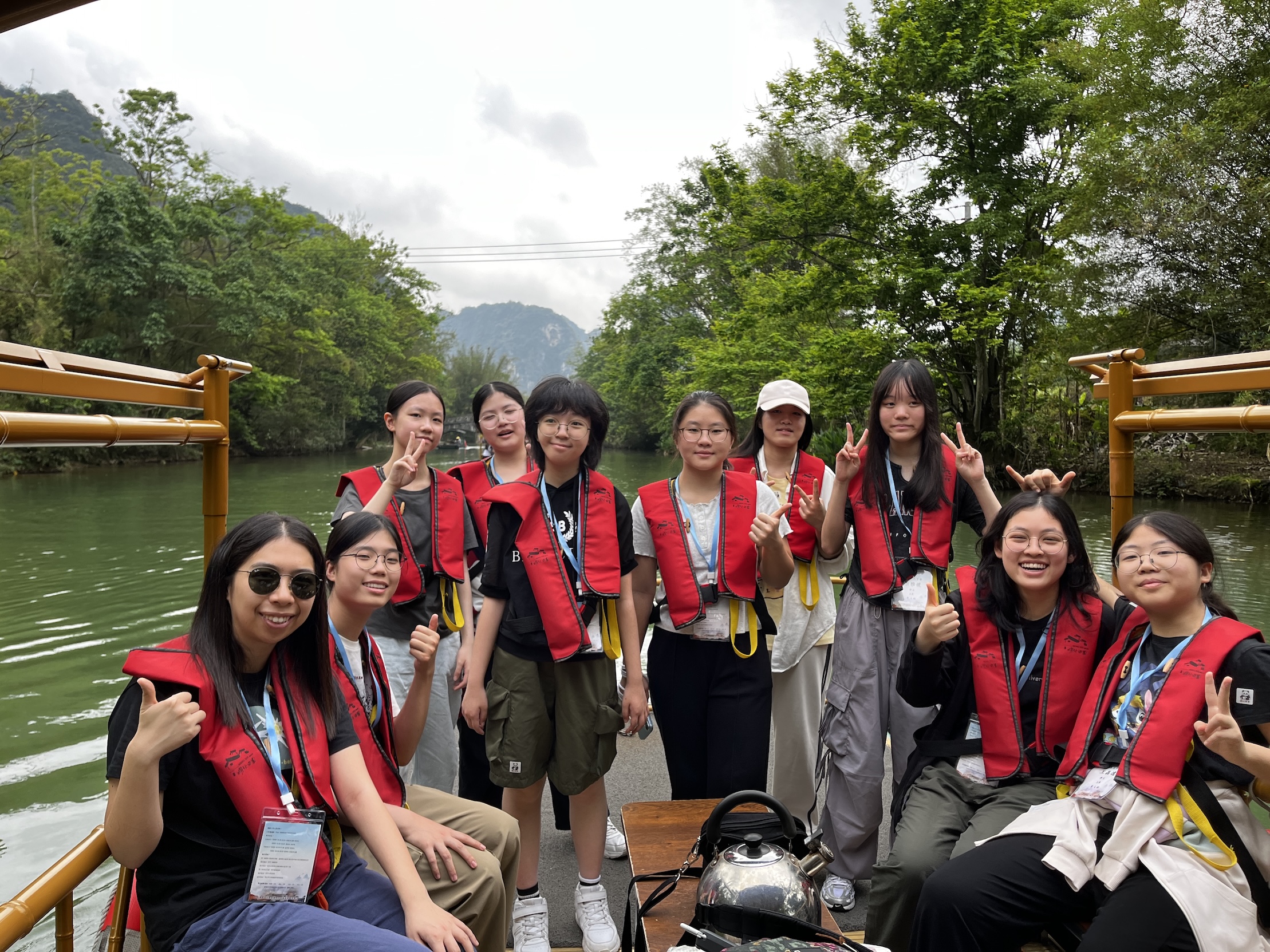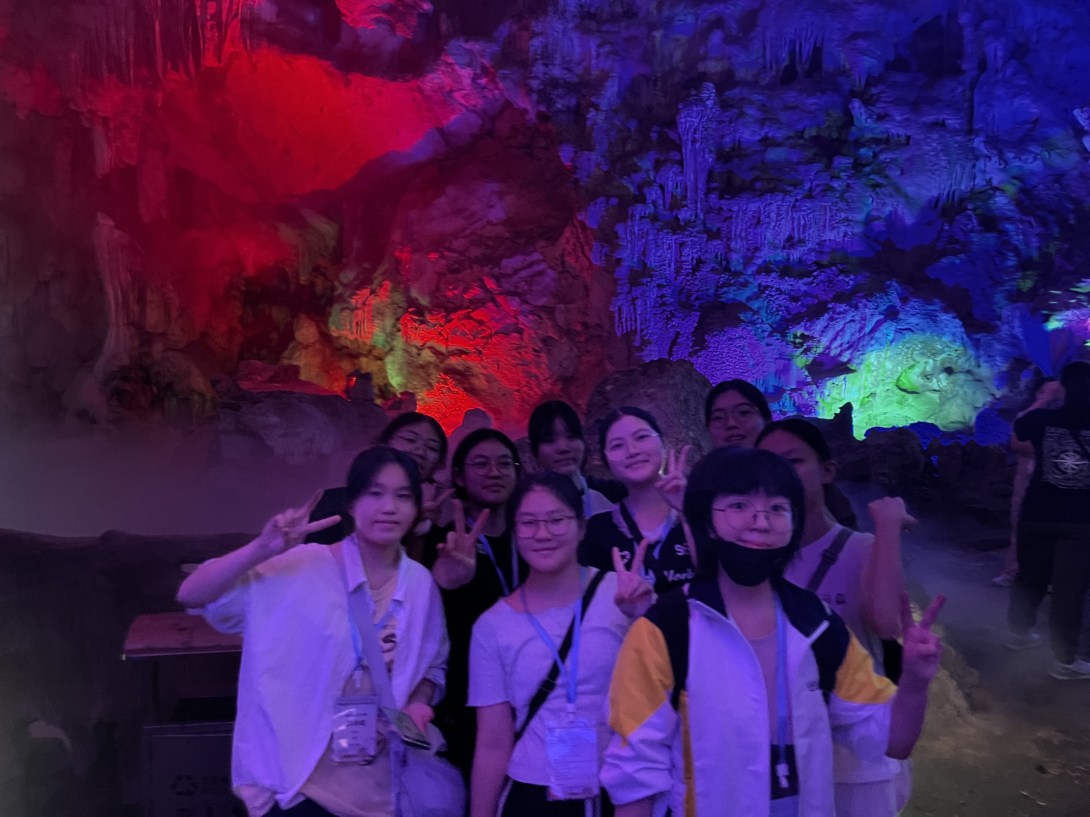 行程首日,我們首先來到南寧市內的「南湖公園」,在湖光水色中感受這座城市的生態規劃。第二天,同學們深入探索廣西的文化底蘊與地質奇貌,走訪了「廣西民族博物館」及「民族村」,近距離感受壯族等少數民族的建築與工藝魅力;隨後前往「伊嶺岩」,在宏偉的鐘乳石溶洞中見證大自然的鬼斧神工,並反思維護生態安全的重要性。