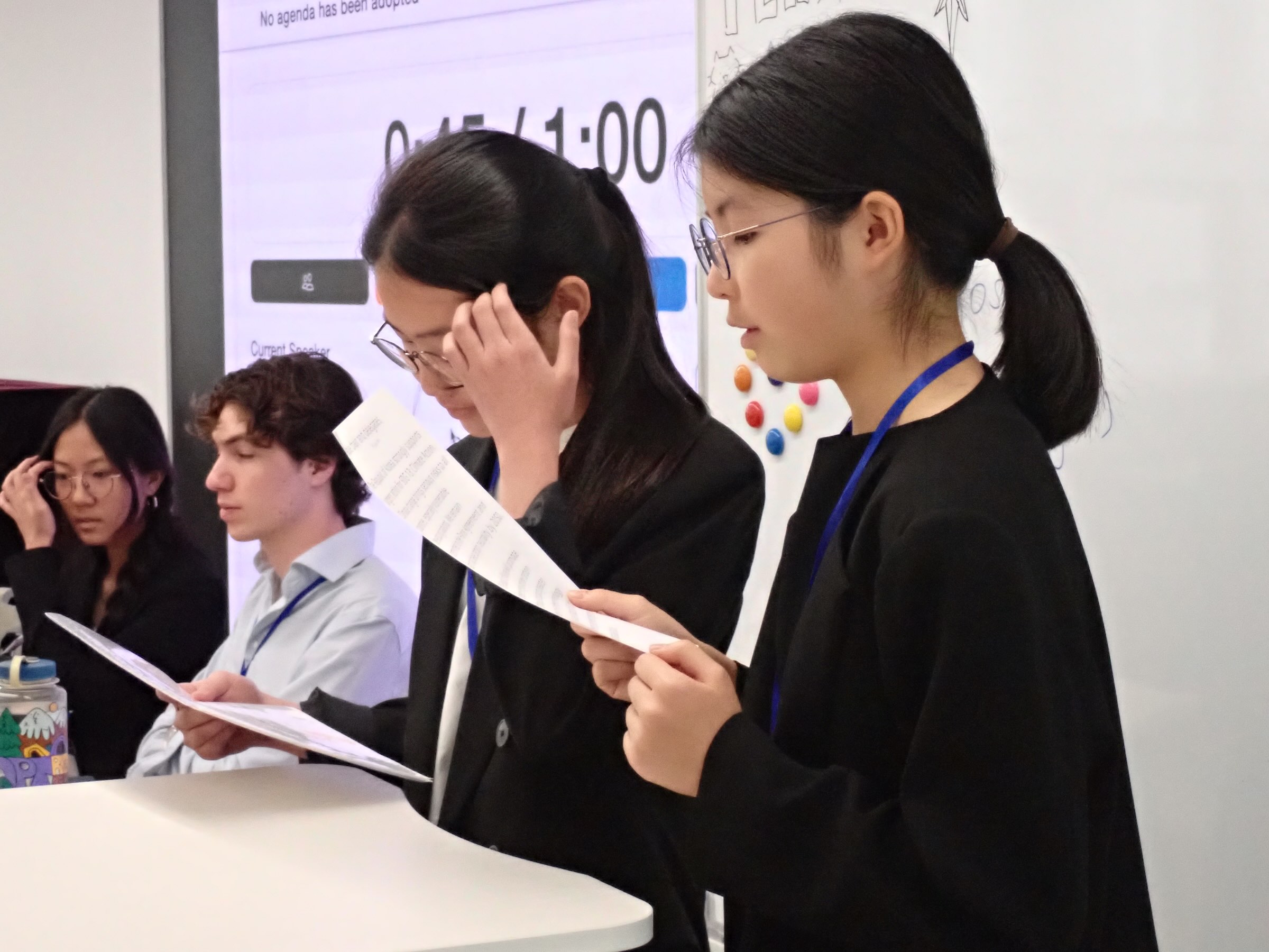 We were also honored to have Zoe and Gabriel from Utrecht University (UUMUN) join us as guest chairs. Their expertise elevated the conference, and we are excited that they will be staying with us to deliver specialized MUN workshops for our S4 girls in the coming week.