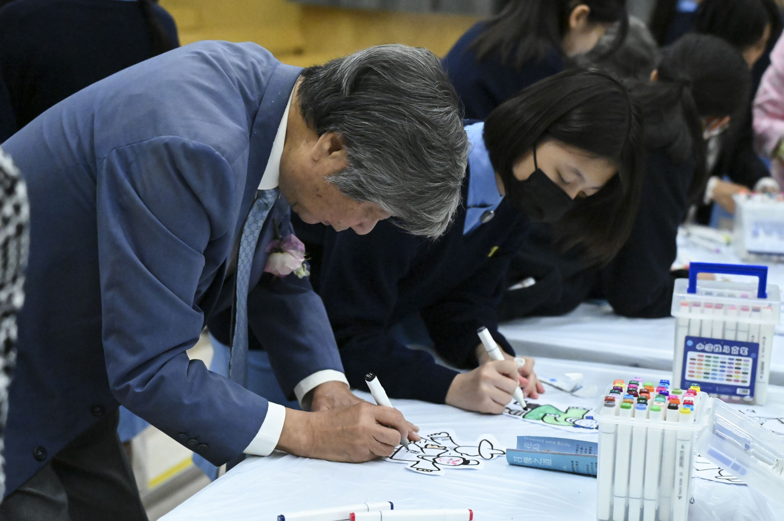 honorable Mr. Bernard Chan, and Dr. David Fang, the artist’s son. The school warmly